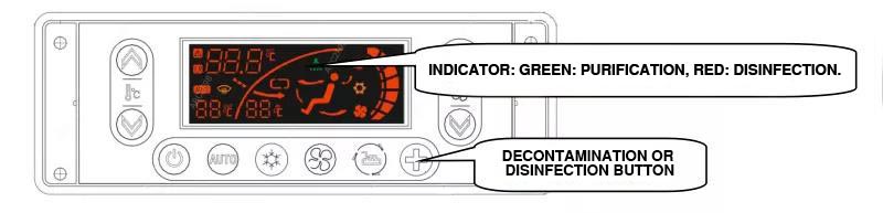 ● Electric air conditioning operation: by long pressing the "ventilation" key symbol, the cleaning and disinfection device can be turned on, and the corresponding indicator symbol will be lit on the panel.