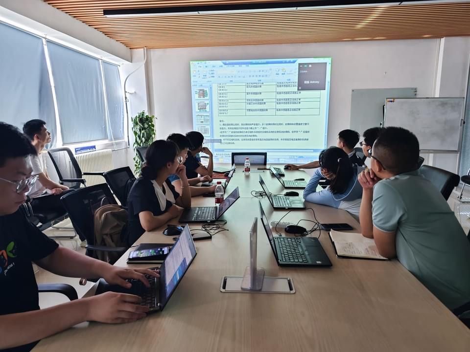 The sales team and engineers were meeting about the latest products, technologies and advantages.