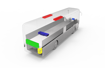 Lift the condensor and evaporator to the top of the bus, install and connect the pipes and wiring harness, then fix the condesor and evaporator to the bus rooftop, put glue for sealants where needed.